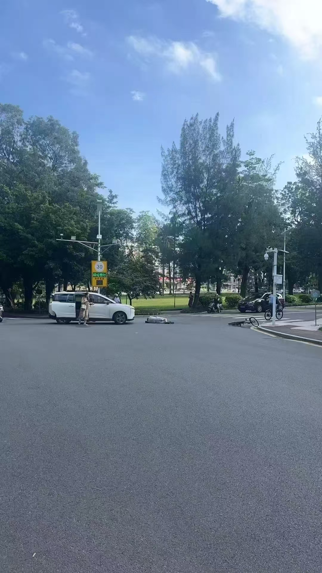 9月29日,有网友发帖称,华南理工大学今日疑似再次发生一起车祸,事发地点位于五山校区。网络图片中,有一人倒在地面,身后停着一辆白色汽车,还有一辆自行车倒在路边。